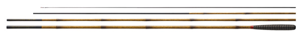 巨べらとのやり取りは掛けた直後の数秒で大方の勝負がつくといっても過言ではない。そのわずかな時間で竿が立てられるか否かこそ、「荒法師 武天」の神髄と考える。柔軟なソリッド穂先が生み出す一瞬の「間」により主導権を握り、そして高弾性素材を曲がるように仕立て、ネジレ防止の最適構造『X45』でネジレ方向への補強を得て実現した、柔軟にしなり、粘る胴部がノサれるギリギリの局面で“曲がる”ことで竿を起こし、竿としての機能を立て直すことで相手の最後の力を説き伏せ、仕留める。「荒法師 武天」は“獲りたいへら”“獲りたいタイトル”のために戦いを挑むへら師へ贈る、「極限で活きる竿」である。特に障害物周りの巨ベラ狙いや、大型の多い管理池釣場の攻略に最適です。 |